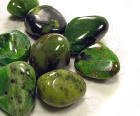Variedad de calcedonia, también llamada ágata verde, dado que su nombre deriva del término griego krioso passon, que significa "oro verde". El color verde dorado es debido al óxido de níquel. Se dice que apacigua las emociones y protege. Composición química: óxido de silicio, SiO2 Colores: verde, dorado, verde manzana Dureza de Mohs: 6,5 a 7 Geometría: masiva Elemento: tierra Regencia Planetaria: Venus Signos: Géminis, Cáncer, Acuario Efectos en los planos sutil y físico: es muy efectiva contra la neurosis, pues resulta relajante y tranquilizante en los ámbitos emocional y sentimental. Promueve la espiritualidad. Chakra: primero o raíz, cuarto o corazón y séptimo o corona. Ver propiedades de otras piedras, cristales y gemas esotéricas: Ágata Aguamarina Amatista Ámbar Azurita Calcita Coral Cornalina Crisoprasa Cristales de Cuarzo (Cuarzo ahumado, Cuarzo Citrino, Cuarzo Cristal, Cuarzo Cristal Laser , Cuarzo Nevado, Cuarzo Rosado, Cuarzo Rutilado, Cuarzo Verde) Diamante Esmeralda Fluorita Granate Heliotropo Hematite Jade Jaspe Kunzita Lapislázuli Malaquita Obsidiana Ojo de Tigre Ónix Ópalo Peridoto Perla Piedra Lunar Pirita Rodocrosita Rodonita Rubí Sodalita Topacio Turmalina (Turmalina azul y Roja; Turmalina Corazón de Sandía; Turmalina negra;Turmalina Rosa;Turmalina Verde), Turquesa