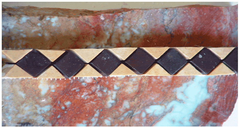 Formado por triángulos de piedra de color amarillo y cuadrados de color café moro